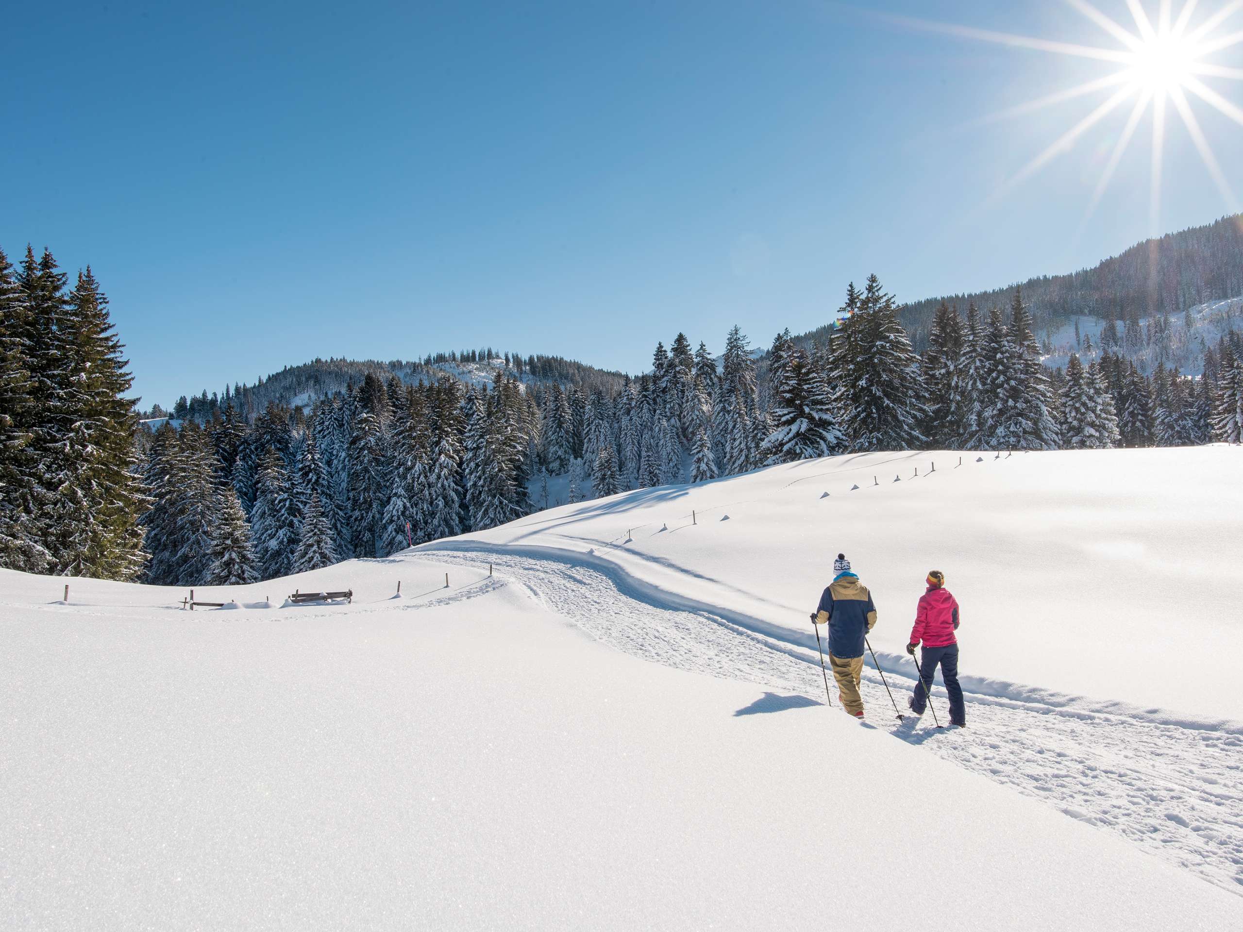 Der präparierte Wegverlauf kann je nach Schneeverhältnissen leicht variieren, ist aber gut ausgeschildert.