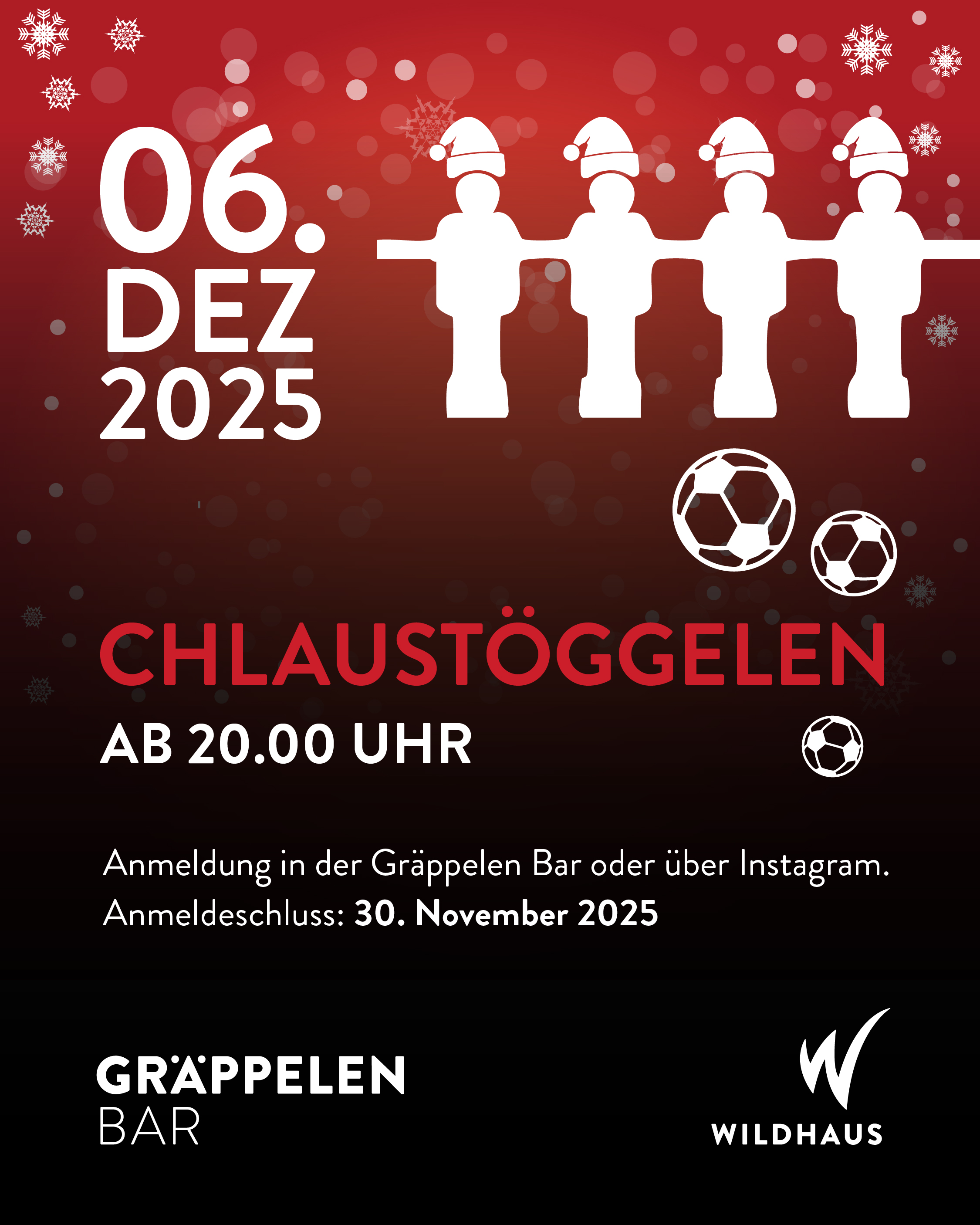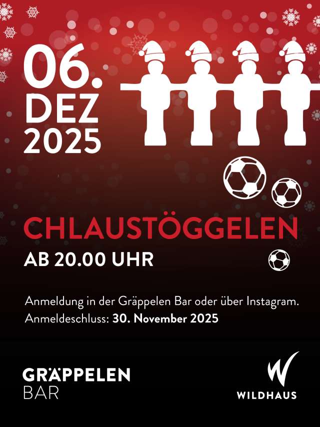 Anmeldung direkt in der Gräppelen Bar oder über Instagram. Anmeldeschluss ist der 30. November 2025